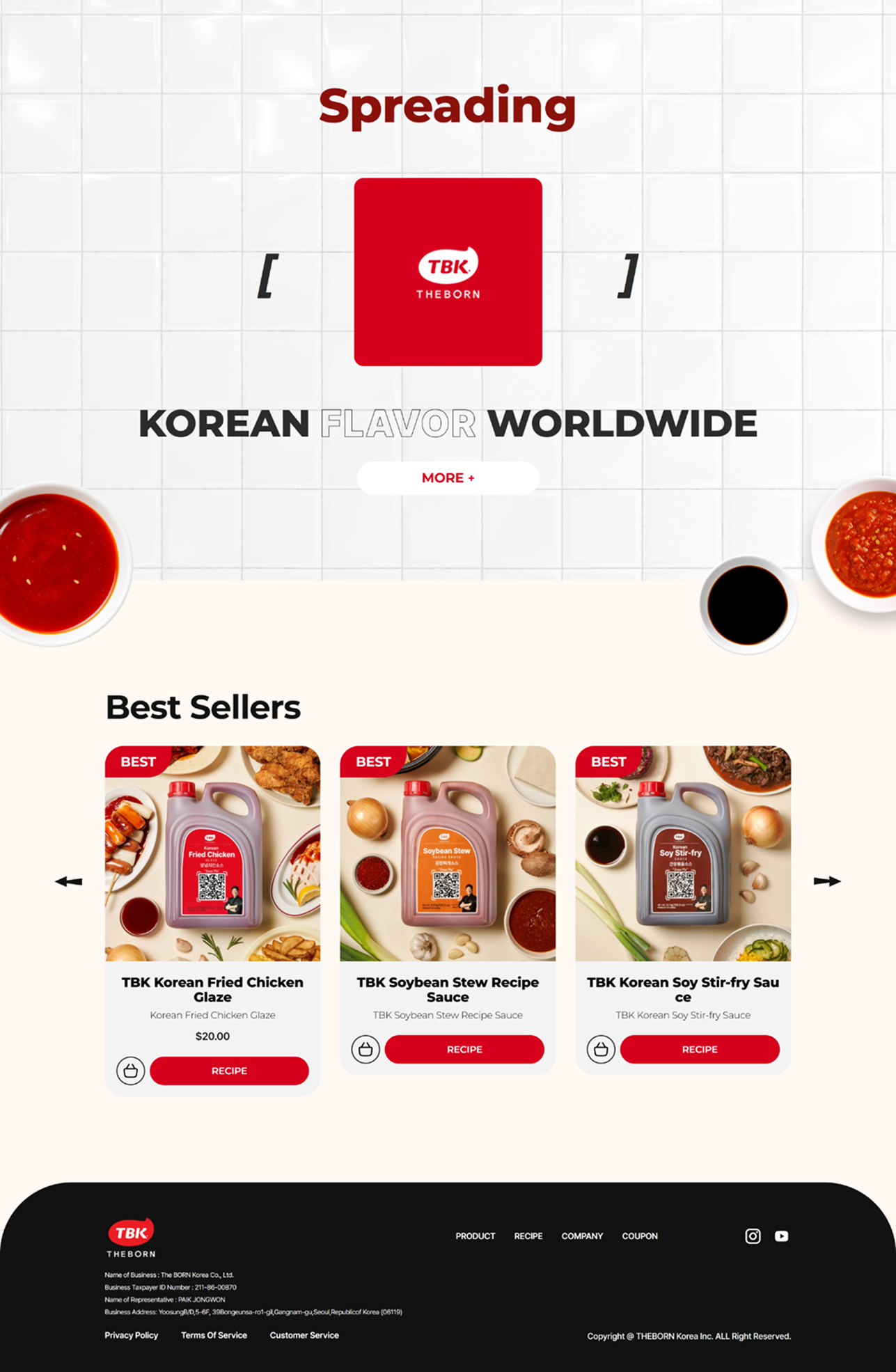 해외몰은 단순 번역이 아닌 TBK 소스를 중심으로 한국의 맛을 전 세계에 소개하는 글로벌 전용 온라인 스토어입니다.