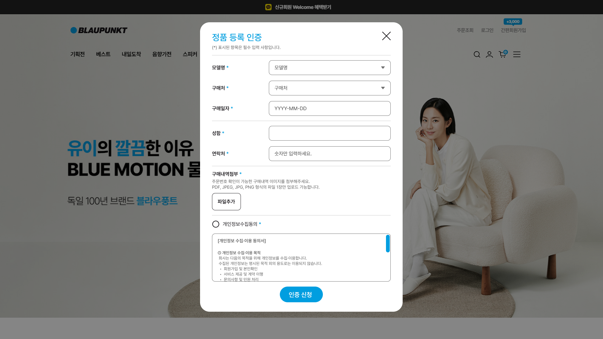사용자는 회원 인증 절차를 거친 후 제품 정품 등록 및 인증 신청을 진행할 수 있으며,